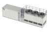 This immersion cooling system is built into a standard 40-foot high container and consists of the following three main areas: